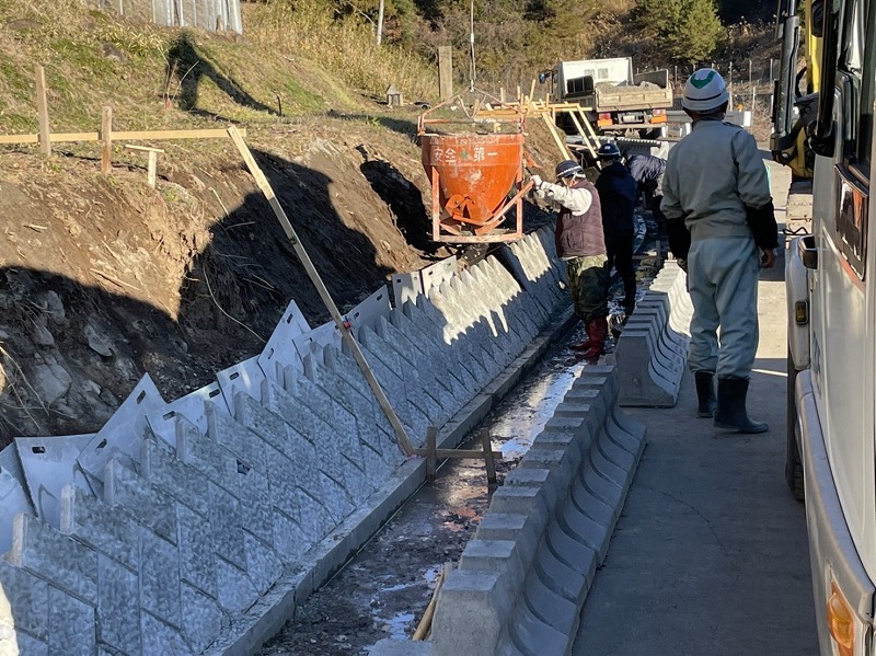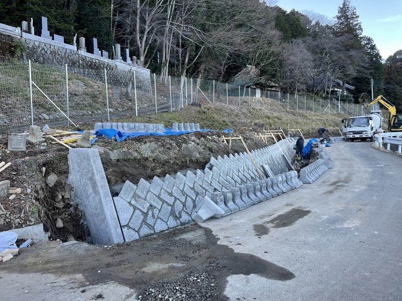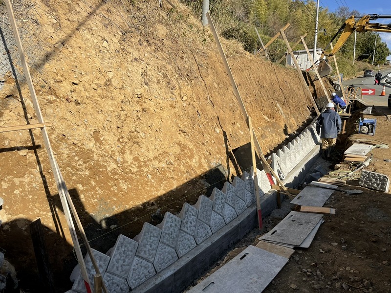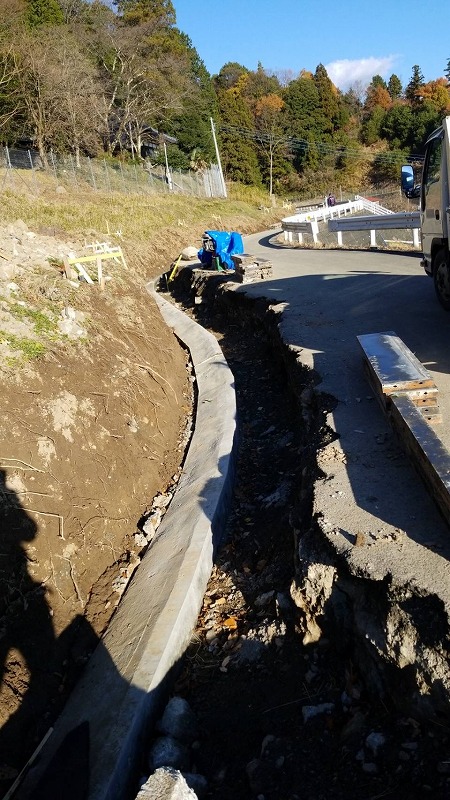 今回民間地内において昨年台風による地山の崩落が起きました。9月から施工が始まり11月に完成となりました。